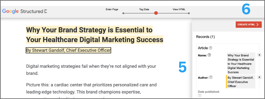 - In the example below, I have highlighted the blog title and assigned it the markup “Name.”
