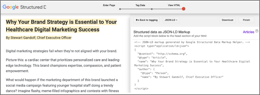 However, working with an experienced developer or expert healthcare marketing partner to create and implement schema markup for each of your web pages is highly recommended.