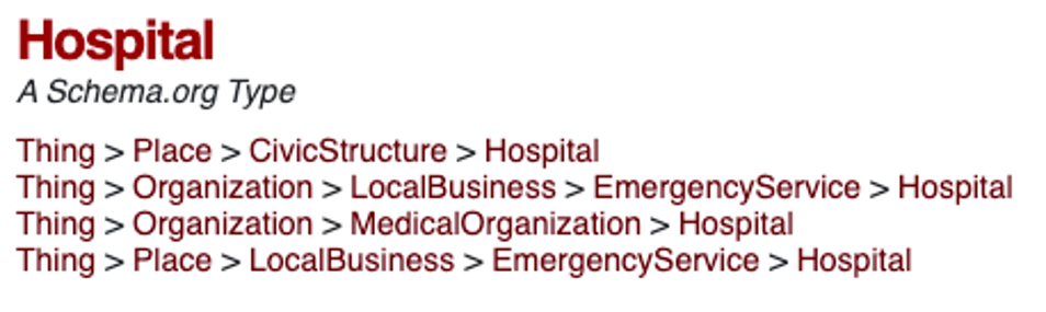Note the different hierarchies of a hospital ‘thing’.