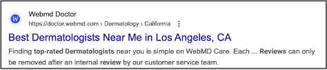 Providers, clinicians, medical staff, and support staff should understand the importance of gathering 5-star ratings and positive reviews for results display. And understand the potential impact a negative review can have on overall ratings. Schema also communicates the number of reviews collected, and often that and the ratings themselves can be a deciding factor in where prospective patients click.